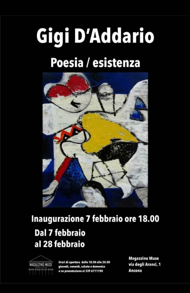 Quando l'arte si fa poesia, al via la personale di Luigi D'Addario «Poesia/Esistenza». L'appuntamento, negli spazi della galleria d'arte Magazzino Muse di Ancona, in via degli Aranci 1/F, è per sabato, 7 febbraio, alle ore 18.00, ma la mostra sarà visitabile sino al 28 febbraio 2026.