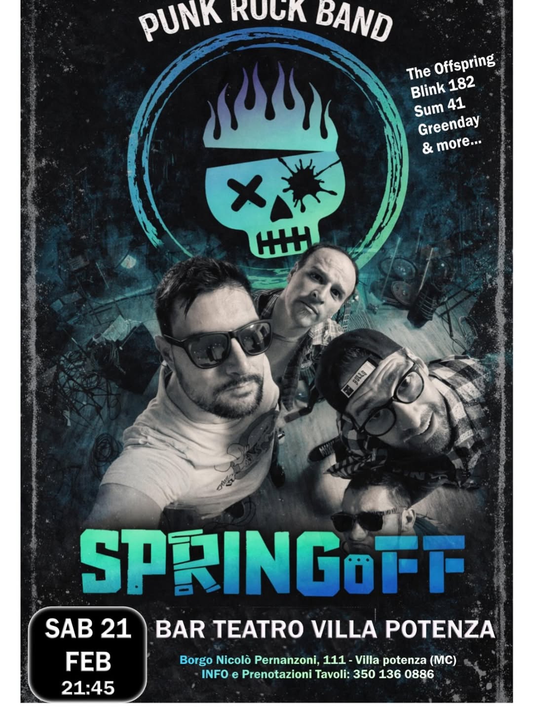 Sabato 21, alle 21:30, la scena sarà inizialmente occupata dagli Spring Off, una tribute band marchigiana che ha il compito di iniettare una dose di adrenalina californiana con i classici degli Offspring.