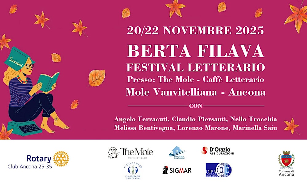 BERTA FILAVA, FESTIVAL LETTERARIO, VI edizione Dal 20 al 22 novembre, tre giorni dedicati alla narrativa italiana contemporanea con la partecipazione di autori di primo piano alla Mole Vanvitelliana di Ancona