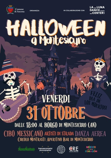 La Giunta comunale di Ancona ha approvato la delibera per l'organizzazione della festa di Halloween a Montesicuro. Protagonisti nel borgo saranno il mistero e il divertimento e dove i bambini e le loro famiglie potranno partecipare dalle 18:00 ad un contest che si ispira alla spiritualità messicana del Dia de Los Muertos.