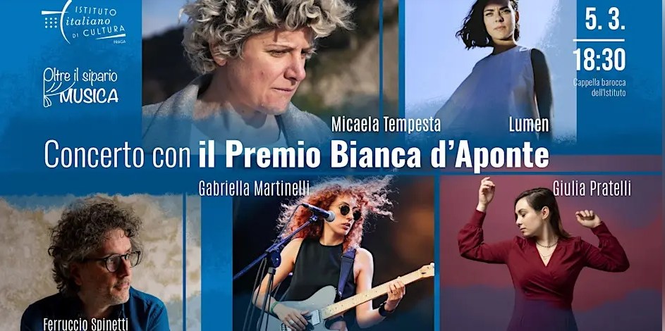 Come consuetudine, il Premio Bianca d'Aponte, la manifestazione che da 22 anni dà spazio alle cantautrici emergenti e alla musica di qualità, a primavera porta alcune delle vincitrici e finaliste delle precedenti edizioni ad esibirsi in serate in Italia ed Europa. Quest'anno la prima occasione sarà il 5 marzo a Praga, all'Istituto Italiano di Cultura. L'evento rilancia le iscrizioni alla 22a edizione del contest del Premio, come sempre gratuite e senza preclusioni di genere musicale, dal rock alternativo all'urban, dal jazz alla world music. La scadenza è fissata al 30 marzo 2026. La scheda di iscrizione e il bando di concorso si possono trovare su www.premiobiancadaponte.it . Le finali si svolgeranno al teatro Cimarosa di Aversa il 23 e 24 ottobre.
