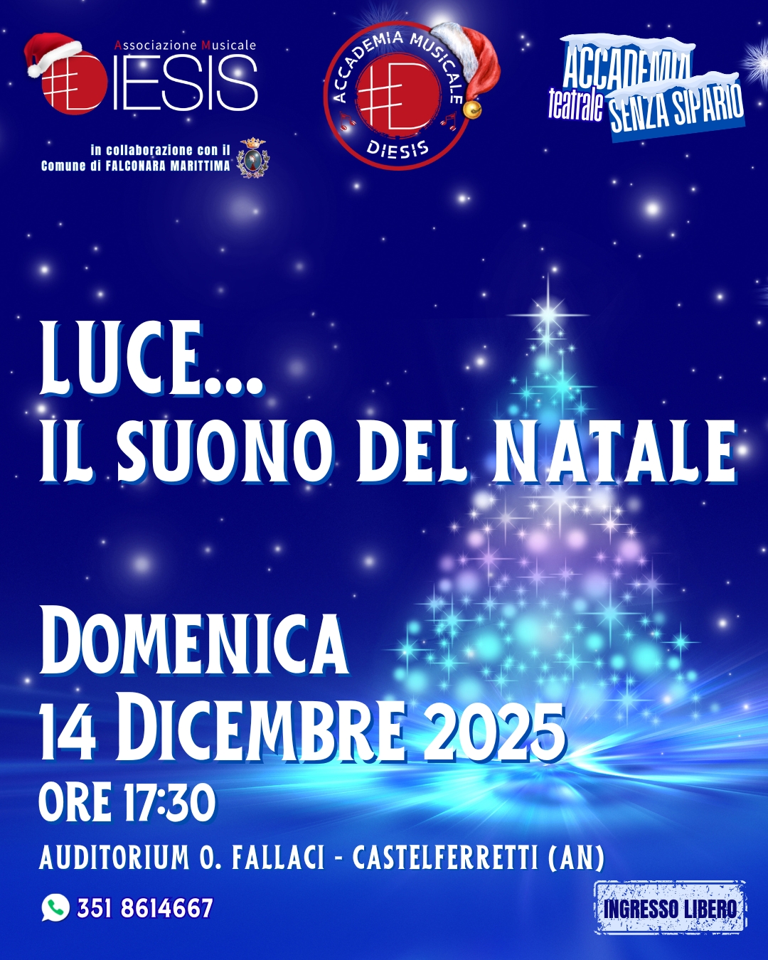 L’Associazione Musicale Diesis, in collaborazione con il Comune di Falconara Marittima, presenta “Luce… Il suono del Natale sabato 14 dicembre