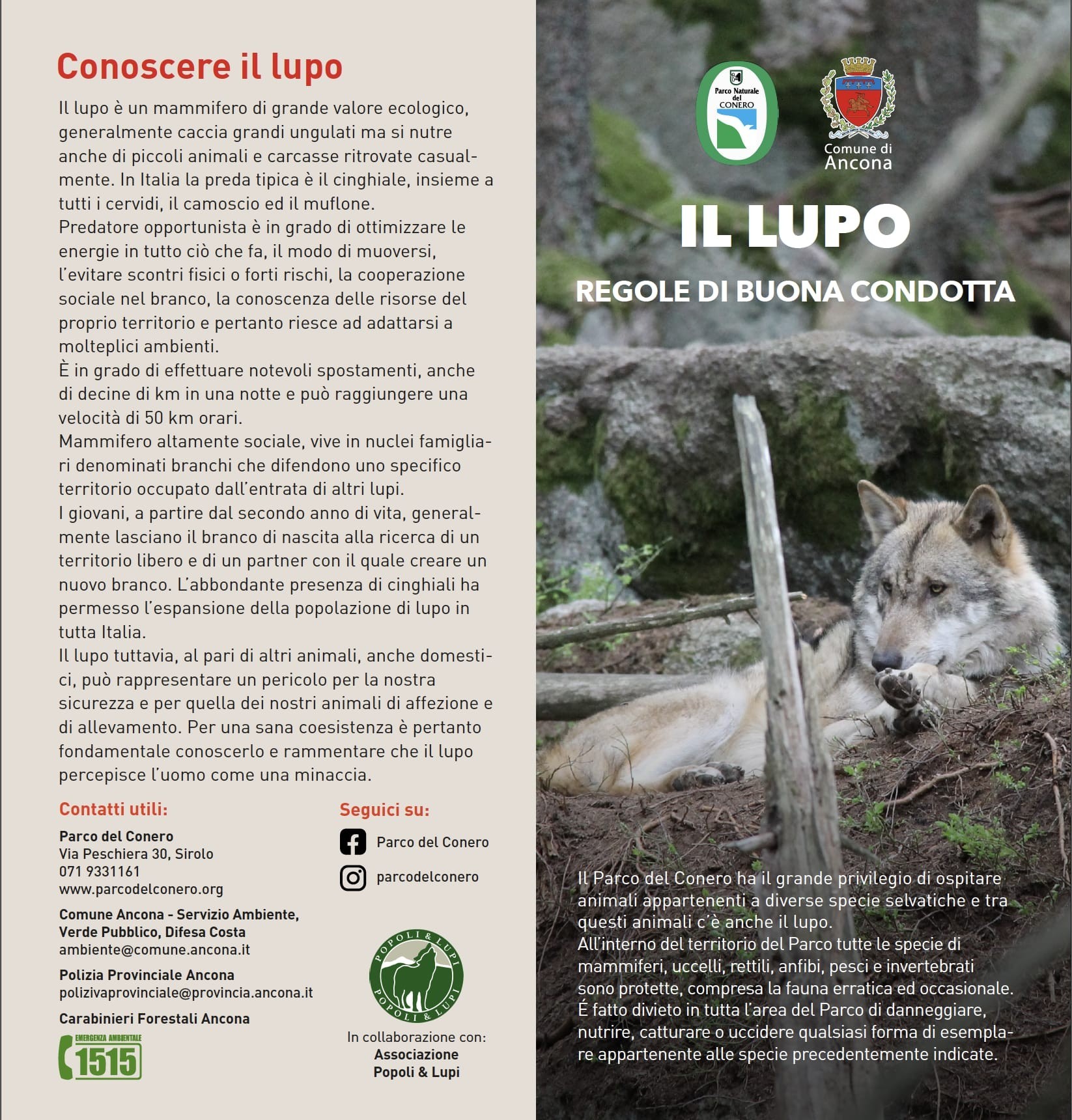 LUPI, AVVISI NEI PARCHI E NELLE AREE PER CANI. IL COMUNE DI ANCONA STAMPA IL DEPLIANT INFORMATIVO