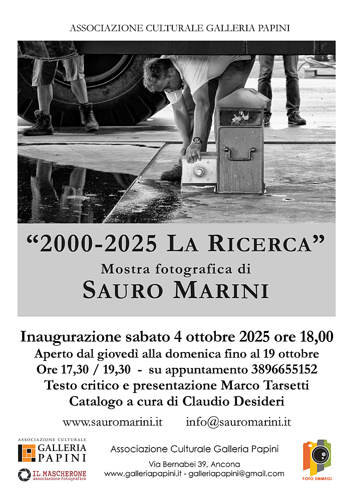 Mostra fotografica "2000-2025 LA RICERCA" dell’artista Sauro Marini. Inaugurazione sabato 4 ottobre ore 18 alla Galleria Papini di Ancona