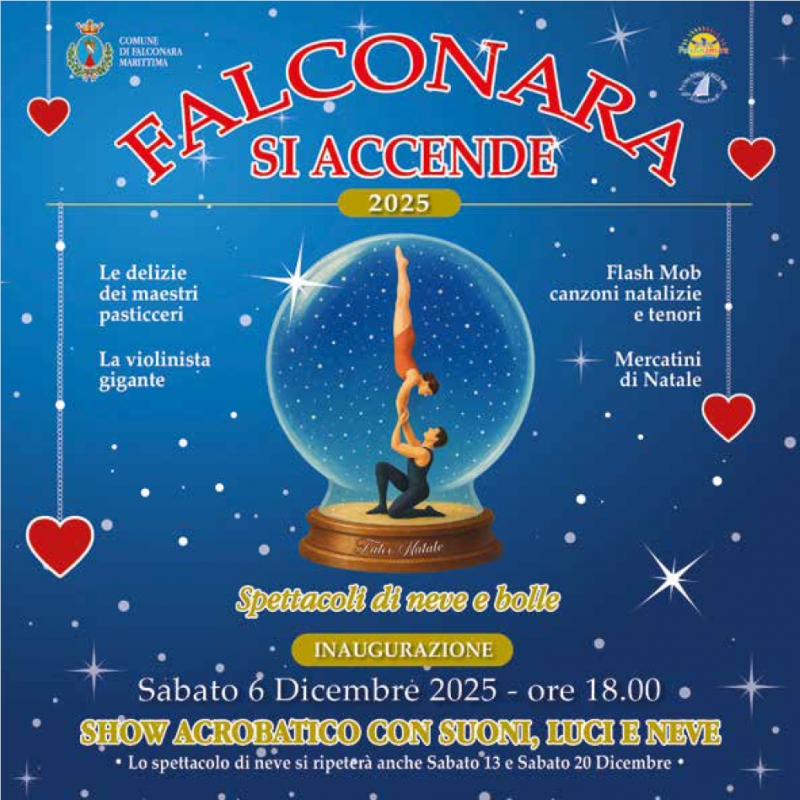 Falconara Marittima si prepara a vivere un Natale sorprendente, con un programma ricco di eventi innovativi e suggestivi capaci di incantare grandi e piccoli. Specialità golose, spettacoli di luci, neve e attrazioni inedite, concerti, presepi e mercatini solidali sono tra gli ingredienti di FalcoNatale 2025. Il calendario delle iniziative, presentato oggi in conferenza stampa, introduce spettacoli unici nel loro genere accanto agli appuntamenti più amati della tradizione falconarese, per un periodo di festa che abbraccerà tutta la città e tutte le età. «Il Natale 2025 si ispira a un'immagine emblematica e ricorrente anche nelle luminarie: il cuore – afferma il sindaco Stefania Signorini –. E' sempre un'emozione organizzare questo evento che ha una caratteristica particolare, la diffusività, perché abbraccia tutta la città, un abbraccio esteso alle associazioni, ai commercianti, agli sponsor. Un altro aspetto che lo caratterizza è infatti la coralità. Tra i momenti da non perdere l'inaugurazione con acrobati, neve e bolle, le luci che si accendono: sarà uno spettacolo magico che ci toccherà il cuore». «Abbiamo puntato sul connubio tra novità e tradizione – sottolinea l'assessore alla Cultura e al Turismo, Marco Giacanella –. Tra le proposte inedite spicca lo spettacolo di neve e bolle colorate, che animerà ogni sabato piazza Mazzini: si parte il 6 dicembre con l'inaugurazione della Boule à Neige, seguita la settimana successiva dall'esibizione di una grande violinista e, il 20 dicembre, dalle performance dei tenori che si svolgerà tra le persone. Saranno occasioni emozionanti pensate per bambini e famiglie. In primo piano anche l'aspetto gastronomico, con le Delizie dei maestri pasticceri, quest'anno affiancate da sessioni di show cooking e, per la prima volta, dalla partecipazione delle Pro Loco della provincia con le specialità del territorio. Fondamentale – conclude – il contributo di tutte le associazioni» «Anche per questo Natale – aggiunge l'assessore al Commercio Ilenia Orologio – avremo la collaborazione di commercianti e Pro Loco che hanno contribuito a illuminare tutta la città. Sarà un Natale diffuso tra Falconara centro, Palombina e Castelferretti, un incentivo ad acquistare nelle attività del territorio». Sabato 6 dicembre in piazza Mazzini si terrà l'attesa inaugurazione con lo spettacolo della Boule à Neige, una grande sfera trasparente all'interno della quale due acrobati daranno vita a un'esibizione fiabesca tra luci, suoni, fiocchi di neve e bolle che ricadranno sul pubblico. A condurre il pomeriggio sarà il giornalista Maurizio Socci, da anni volto amato e legato al Natale falconarese. Nel corso dell'evento il sindaco Stefania Signorini accenderà ufficialmente le luminarie natalizie sull'intero territorio comunale, preceduta dal tradizionale conto alla rovescia. Anche il Balcone del Golfo si accenderà di luci suggestive. La giornata inaugurale ospiterà inoltre le 'Delizie dei Maestri Pasticcieri', con pasticcerie provenienti da tutta la provincia, insieme a una significativa novità gastronomica: il cooking show dedicato all'incontro tra cioccolato e pasta fresca. Il clima di festa proseguirà domenica 7 dicembre con una parata luminosa che animerà le vie del centro. Trampolieri e giocolieri in eleganti costumi bianchi illuminati da luci LED sfileranno accompagnati da un carretto musicale con melodie natalizie. Ad arricchire l'atmosfera saranno gli elfi zampognari, che proporranno brani tradizionali itineranti con cornamuse e zampogne. La performance sarà impreziosita da numeri di fuoco, equilibrismo con spade, mangiafuoco, giocoleria con sfere di cristallo e coreografie con bastoni infuocati. Nello stesso giorno aprirà il Mercatino natalizio solidale, allestito nella Sala Mercato di via Bixio il 7 e l'8 dicembre: sarà possibile trovare splendide idee regalo fatte a mano e nello stesso tempo sostenere le associazioni di volontariato del territorio. Sabato 13 dicembre Falconara accoglierà 'Natale in Pro Loco', promosso da UNPLI insieme alle Pro Loco Pionieri di Roccamare e Falconamare, con la partecipazione delle Pro Loco Rosora, Camerano, Mergo, Monte San Vito, Chiaravalle, Ripe e Jesi. La città diventerà un percorso di sapori autentici grazie agli stand gastronomici che proporranno le eccellenze della provincia. Nella stessa giornata prenderà vita anche lo spettacolo The Big Violinist: una straordinaria artista 'alta' quattro metri, avvolta da una grande gonna illuminata, incanterà il pubblico con un'esibizione capace di trasformare ogni istante in un momento di pura meraviglia. Sabato 20 dicembre piazza Mazzini sarà teatro di un particolare spettacolo di tenori nascosti tra la folla, che sorprenderanno il pubblico con un'improvvisa esibizione. Il flash-mob canoro sarà preceduto dall'attesa esibizione di danza della Mamo Dance. Nella stessa occasione si terrà il mercatino natalizio organizzato dalla New Event, che arricchirà l'atmosfera del centro cittadino. Il periodo delle feste continuerà poi con numerosi appuntamenti musicali e culturali diffusi sul territorio. Sono previsti il concerto dell'Immacolata nella chiesa di Sant'Andrea organizzato da Pro Castelferretti, lo spettacolo musicale dell'associazione Diesis in programma il 14 dicembre all'Auditorium Fallaci, la maratona natalizia dell'associazione ArteMusica il 20 e 21 dicembre, seguita il 22 dicembre dal concerto della scuola di musica Vincent Persichetti. Il 21 dicembre la Corale Pier Battista da Falconara proporrà nella chiesa di Sant'Antonio il concerto 'In una città della Galilea', mentre il Corpo Bandistico di Castelferretti si esibirà nel tradizionale concerto di Natale il 26 dicembre al Palaliuti. Il Centro Commerciale Le Ville ospiterà il 23 dicembre spettacoli teatrali e la presenza delle Pro Loco con caldarroste e vin brulé, mentre in piazza Libertà a Castelferretti, sempre il 23 dicembre, arriverà Mago Zeppola con la sua animazione