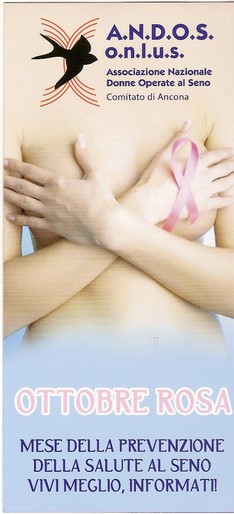 OTTOBRE ROSA - MESE DELLA PREVENZIONE DEL TUMORE AL SENO. VENTENNALE ANDOS - Da domani attivo in Piazza Roma ad Ancona punto informativo dell’associazione per prenotare visita oncologica