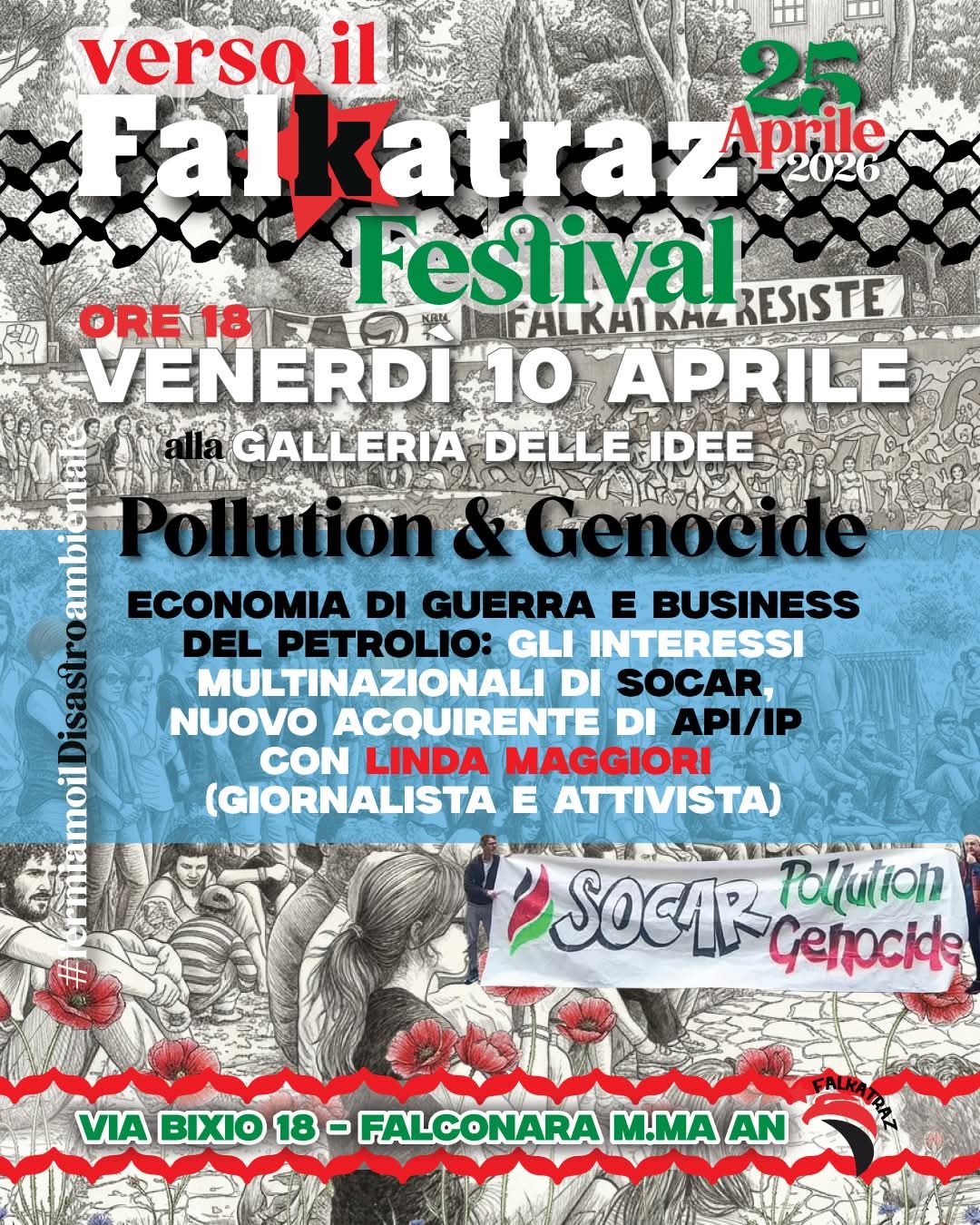 Venerdì 10 aprile ore 18 alla Galleria delle idee di Falconara Marittima sarà presente Linda maggiori, giornalista e attivista che da tempo segue le vertenze ambientali falconaresi e verrà appositamente a Falconara M. per un incontro pubblico (ingresso libero).Linda Maggiori ha pubblicato già diversi articoli sulle nostre vicende ambientali. Recentemente anche autrice di un primo capitolo di inchiesta sulla vendita di api/Ip alla multinazionale azera Socar. Verrà a parlare degli interessi multinazionali di SOCAR ma anche di