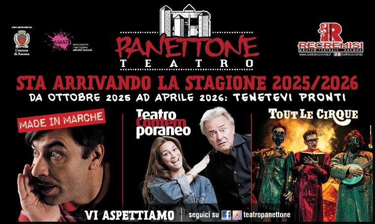 Quello del Teatro Panettone è uno dei più grandi cartelloni della regione con 21 spettacoli ed oltre 50 artisti professionisti provenienti da tutta Italia, messo a punto dal Gruppo Teatrale Recremisi APS, in collaborazione con AMAT Associazione Marchigiana Attività Teatrali e con il patrocinio del Comune di Ancona.