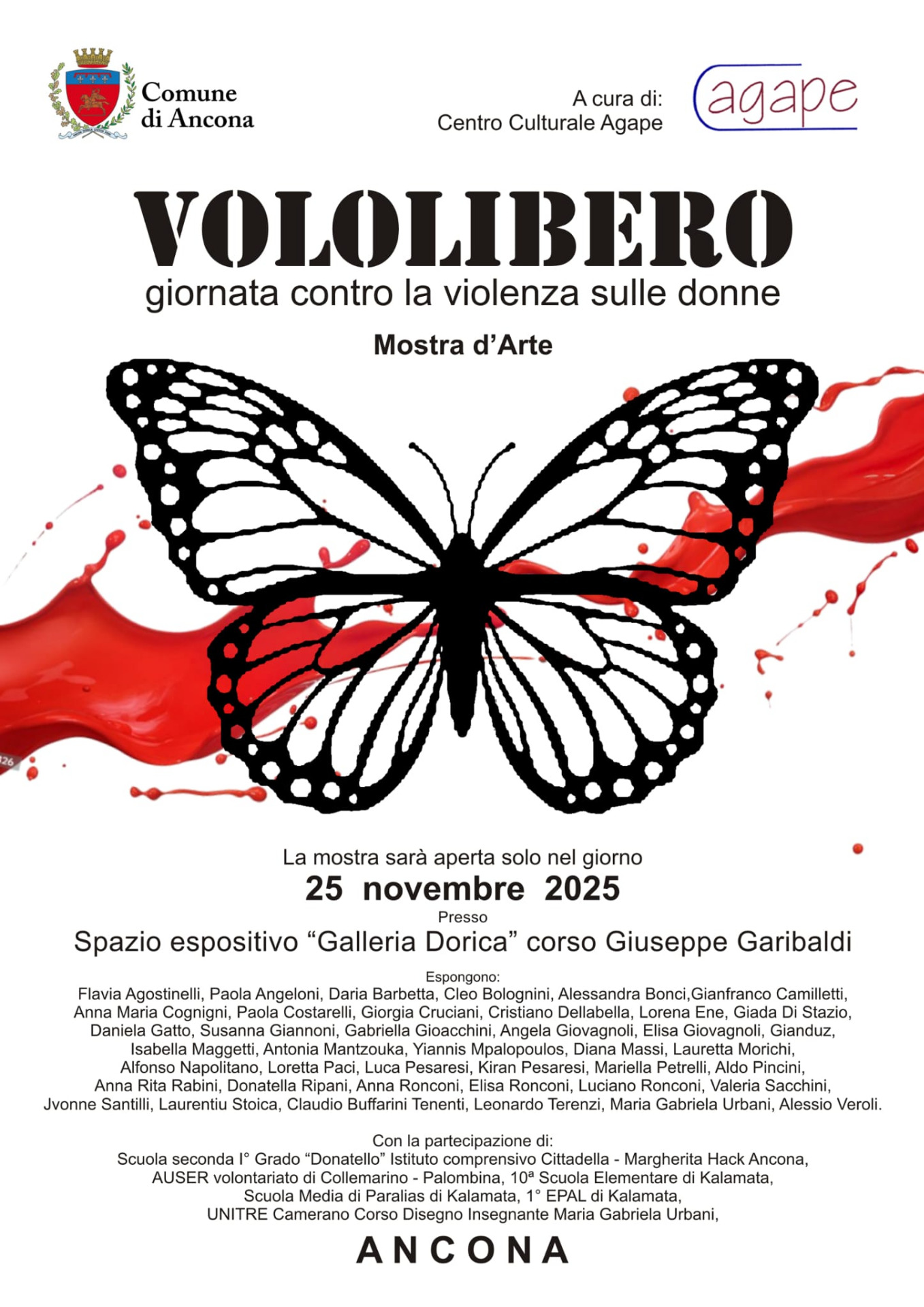 "VOLOLIBERO" CONTRO LA VIOLENZA DI GENERE: MOSTRA D’ARTE IL 25 NOVEMBRE ALLA GALLERIA DORICA DI ANCONA